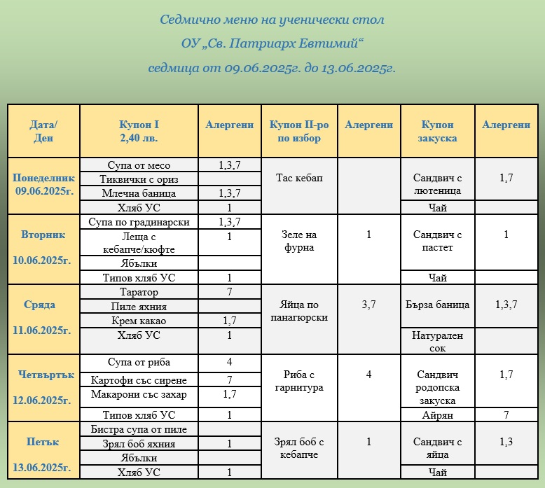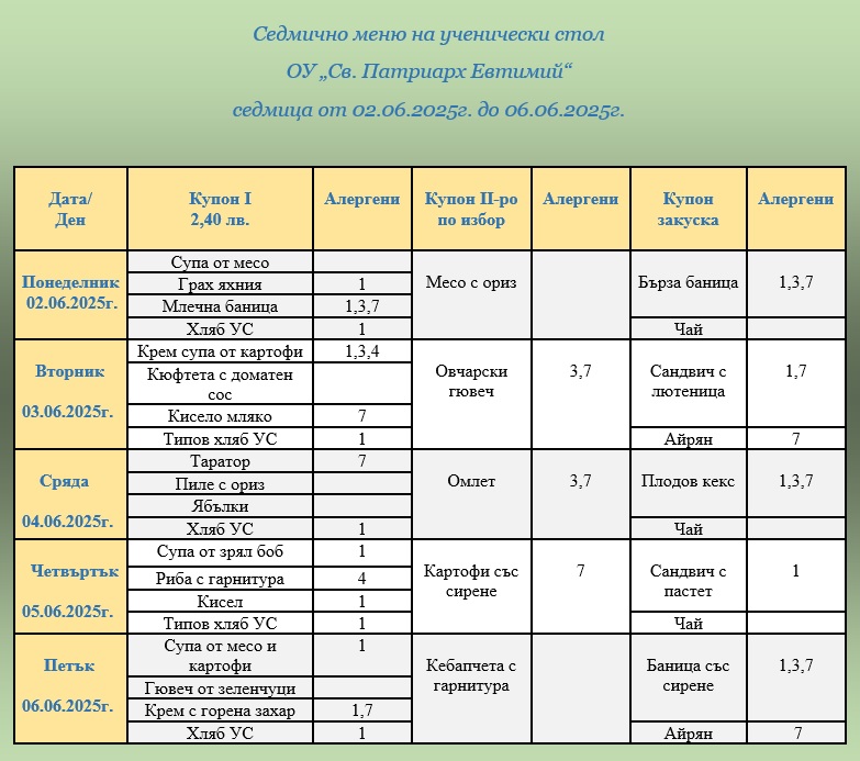 ВАЖНО: Уважаеми родители и ученици, от 1 януари 2026г. цените на купоните за училищния стол са променени.