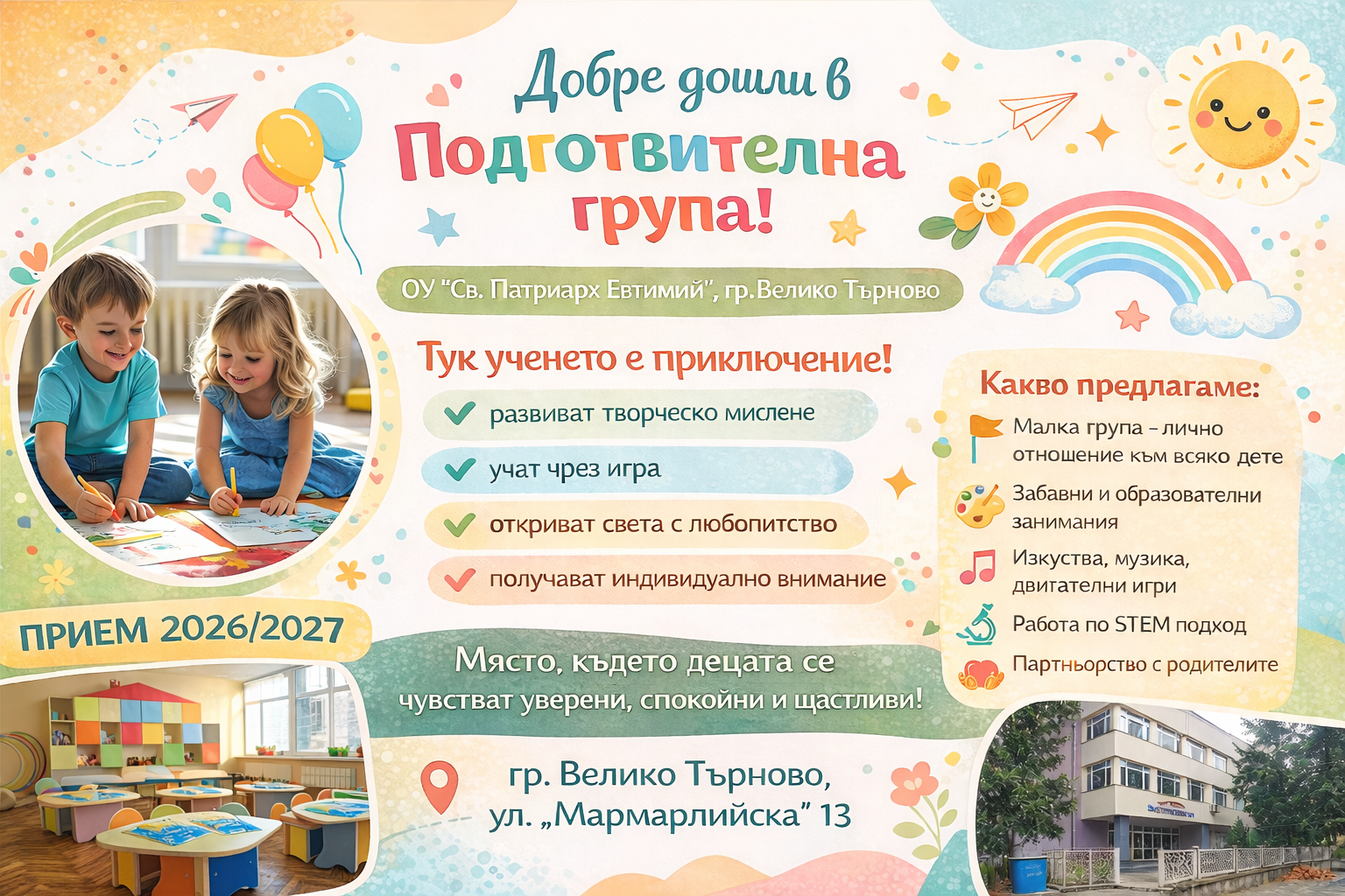 ПРИЕМ НА ДЕЦА И УЧЕНИЦИ 2026 година