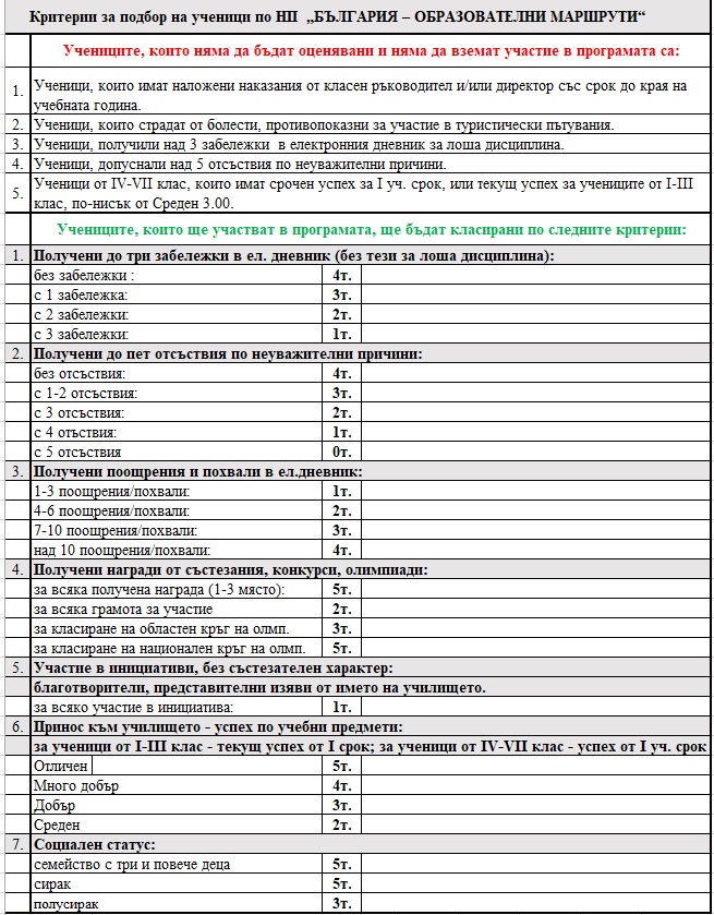 Критериите са приети на ПС № 8 от 14.04.2026г. и са задължително условие за включването на ученици в проекта.
